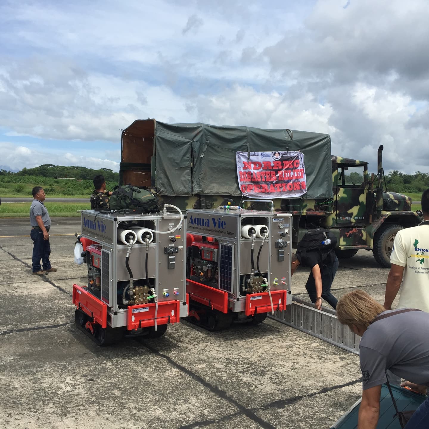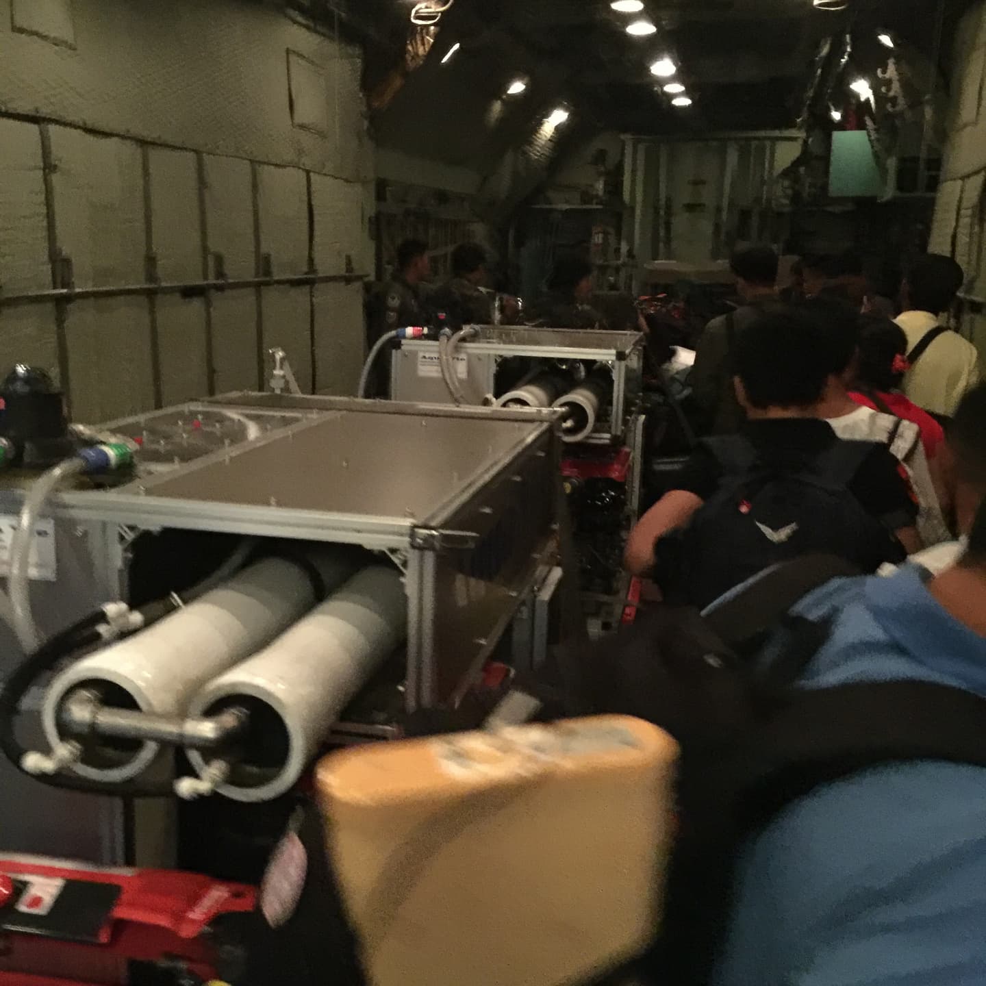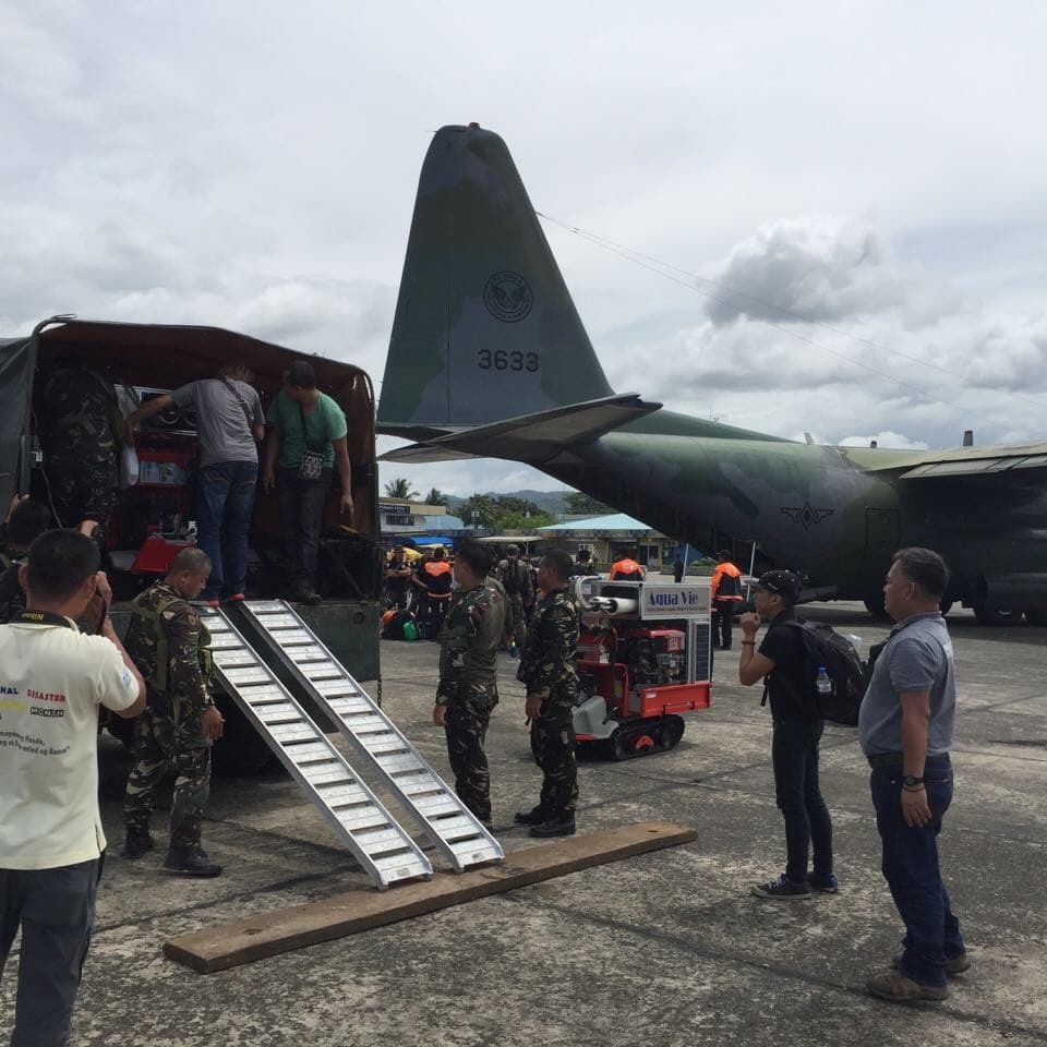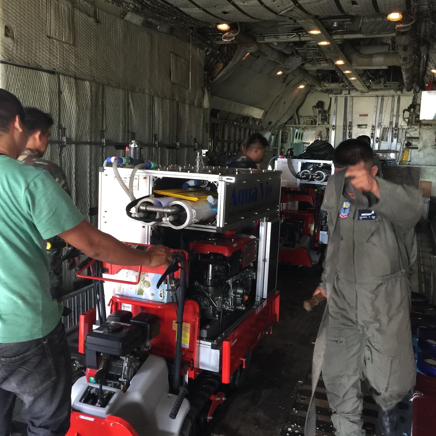 スリガオ地区での救援の際にはフィリピン軍の輸送飛行機に自走式シーアクアディーゼル2台を積み込み、