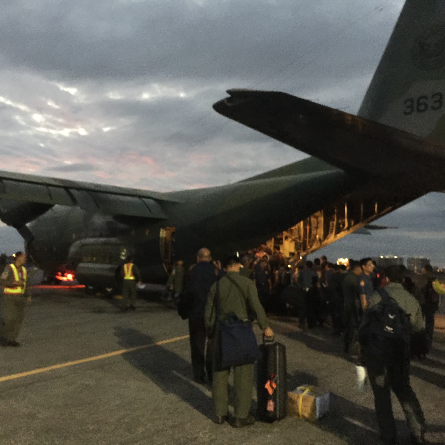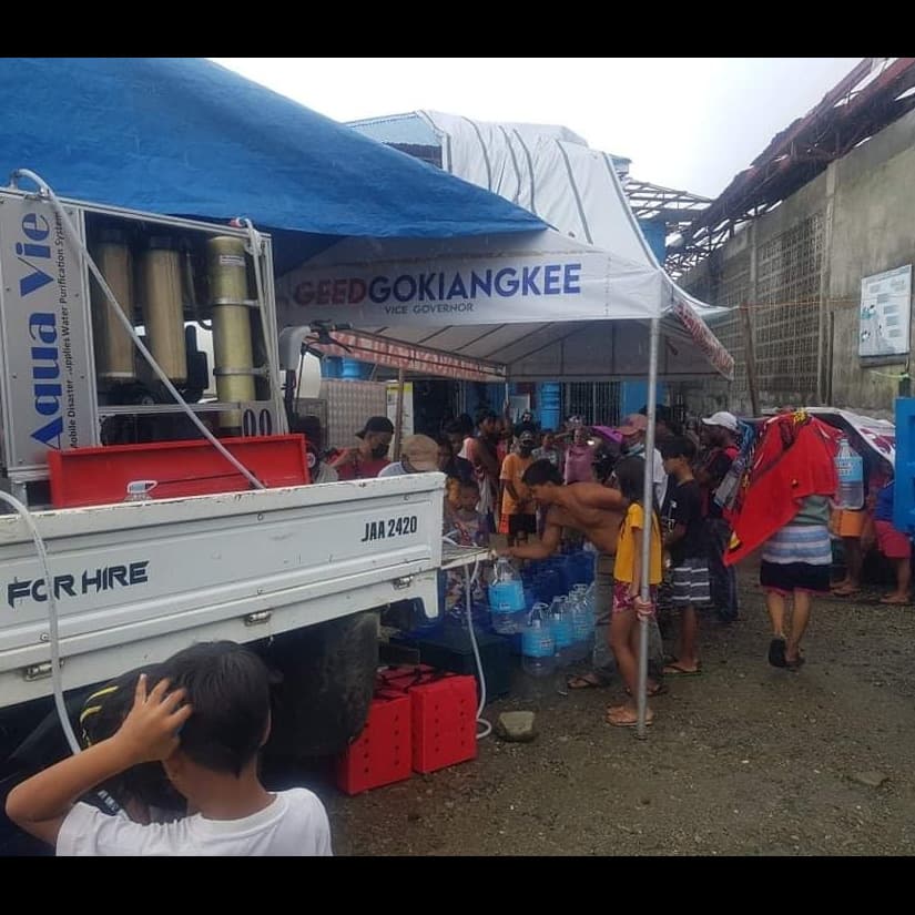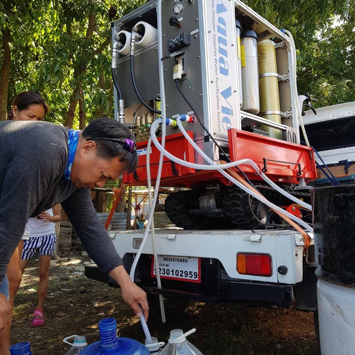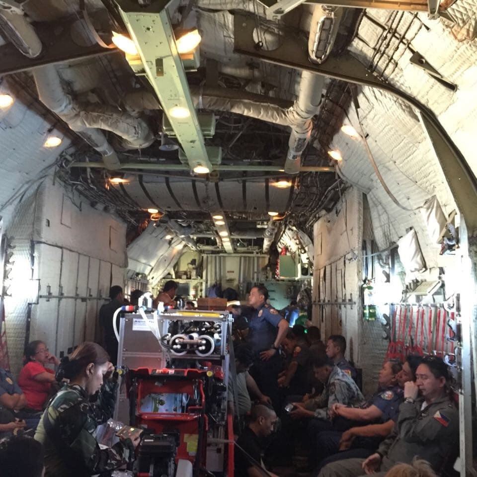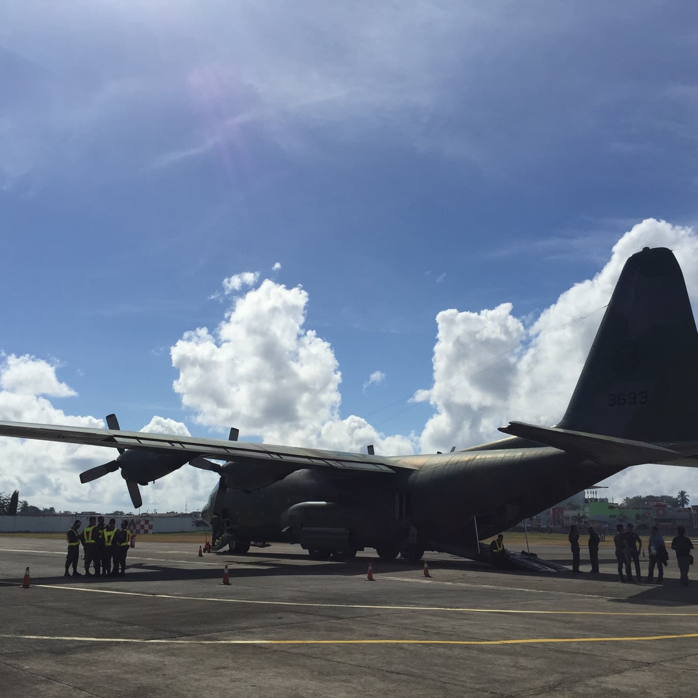 スリガオ地区での救援の際にはフィリピン軍の輸送飛行機に自走式シーアクアディーゼル2台を積み込み、